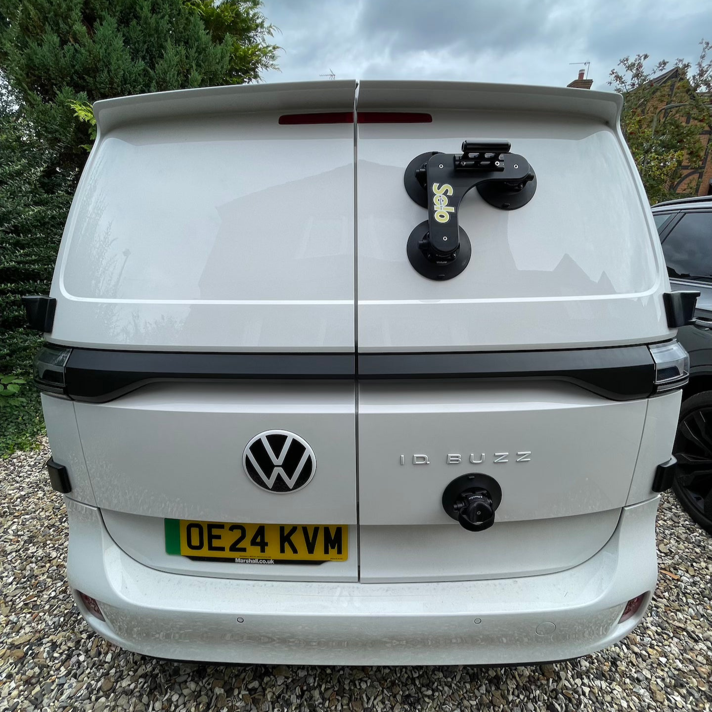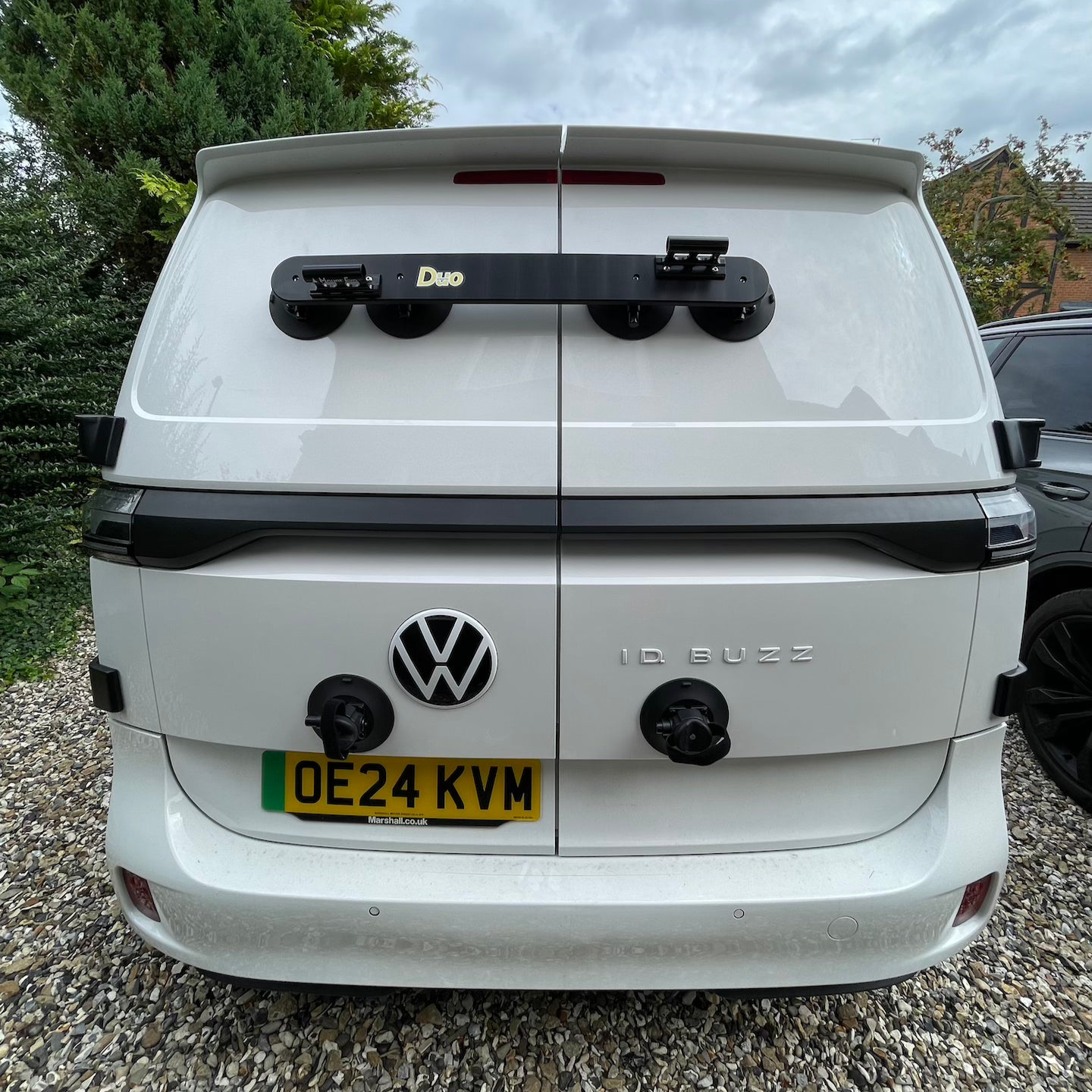 On both the Cargo and MPV varients of the ID.Buzz you can mount your bikes to the rear with ease! Using the rear glass/panel there is ample space to mount your bike and still have use of the rear doors.