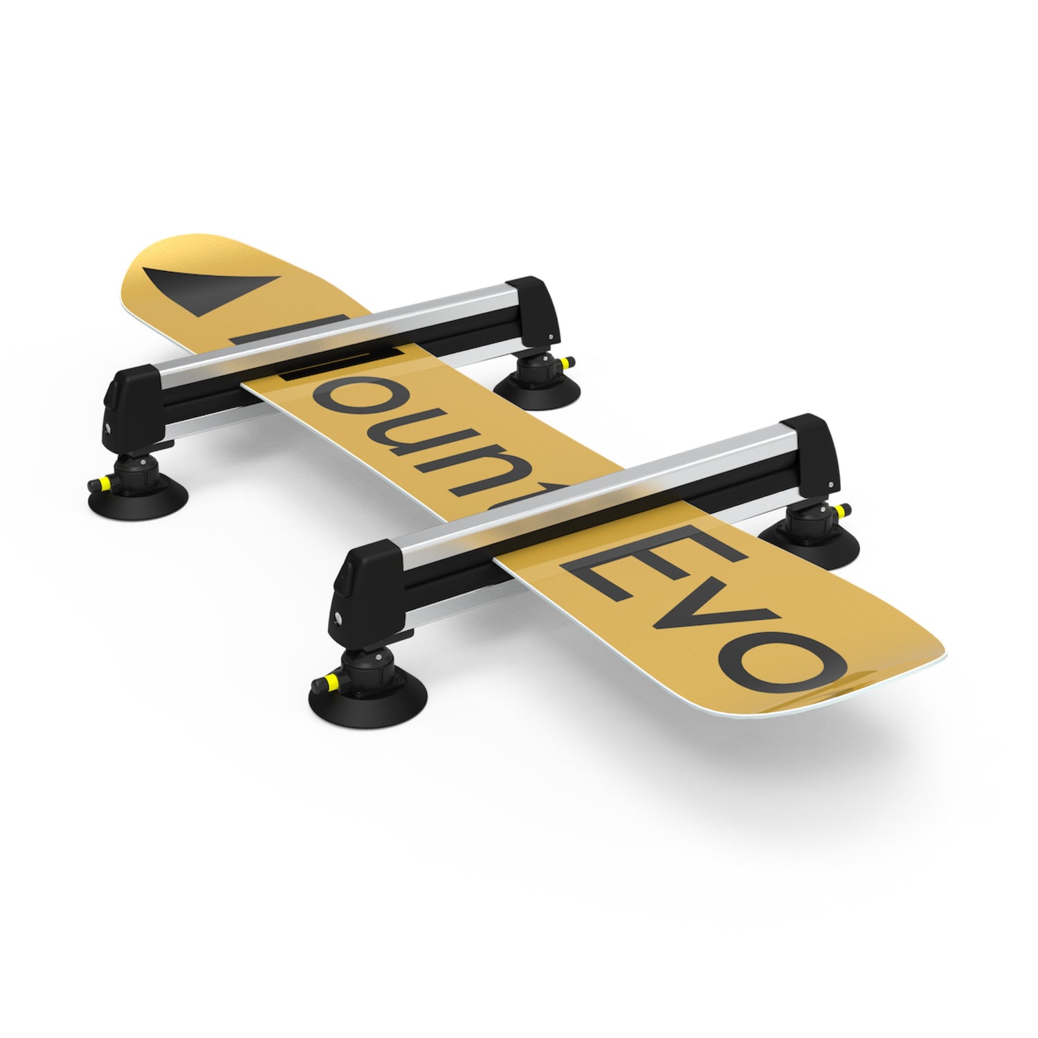 Take both Piste mounts with vacuum cups attached and place on the roof of the car width ways. Space the mounts accordingly for the skis/board you’ll attach to Piste. Bare in mind the size of the load when doing this step.