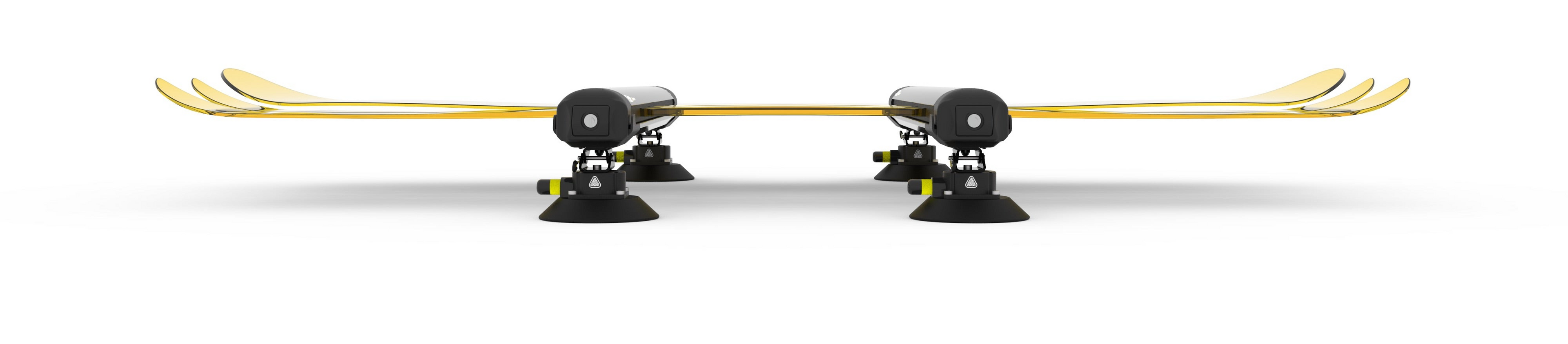 Ein einzigartiges Doppelscharnier sorgt für eine gleichmäßige Druckverteilung auf Ihre Skier. Dies erhöht die Sicherheit, da alle Skier fest fixiert sind.