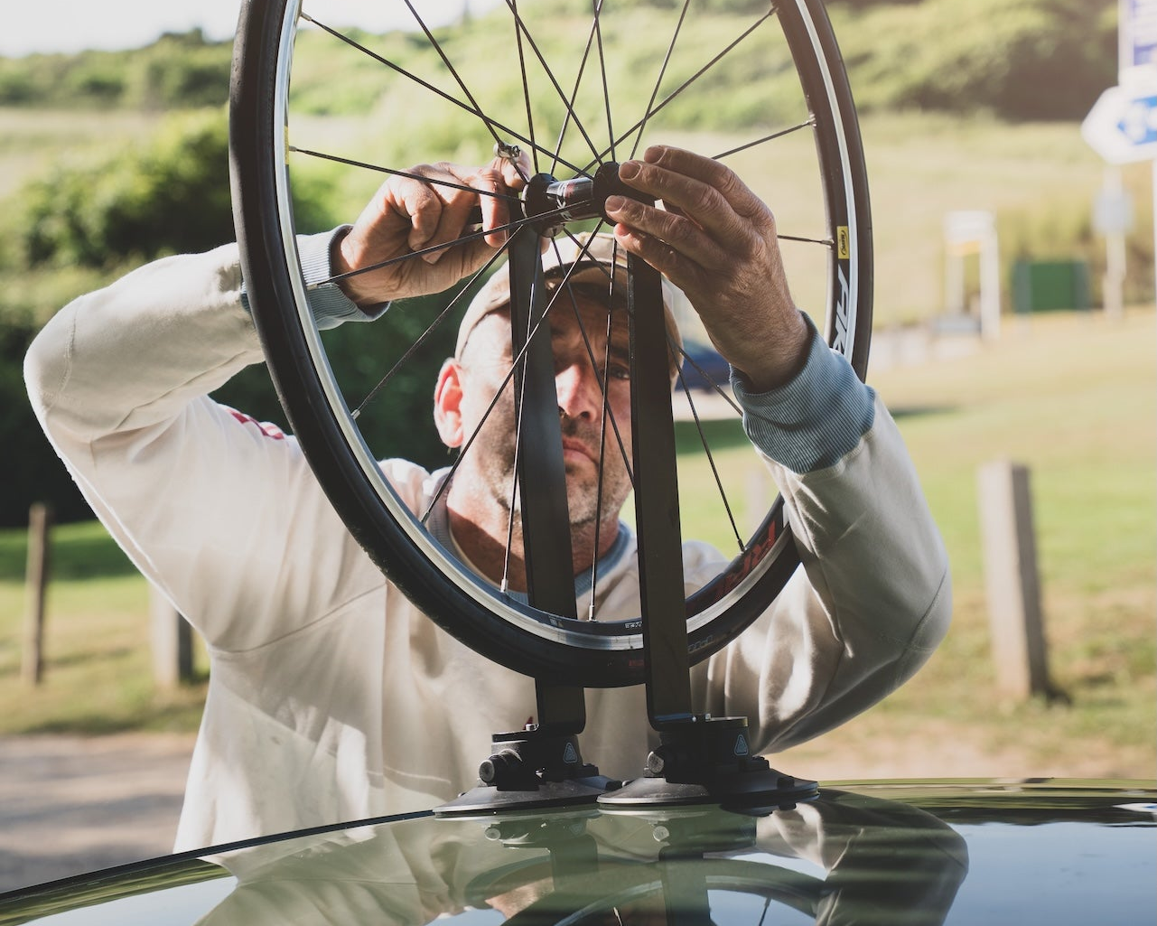 Trio lässt sich auf jeder glatten Oberfläche montieren . Nutzen Sie das Dach oder die Heckfläche Ihres Autos, einschließlich Panorama- und Schiebedächern.