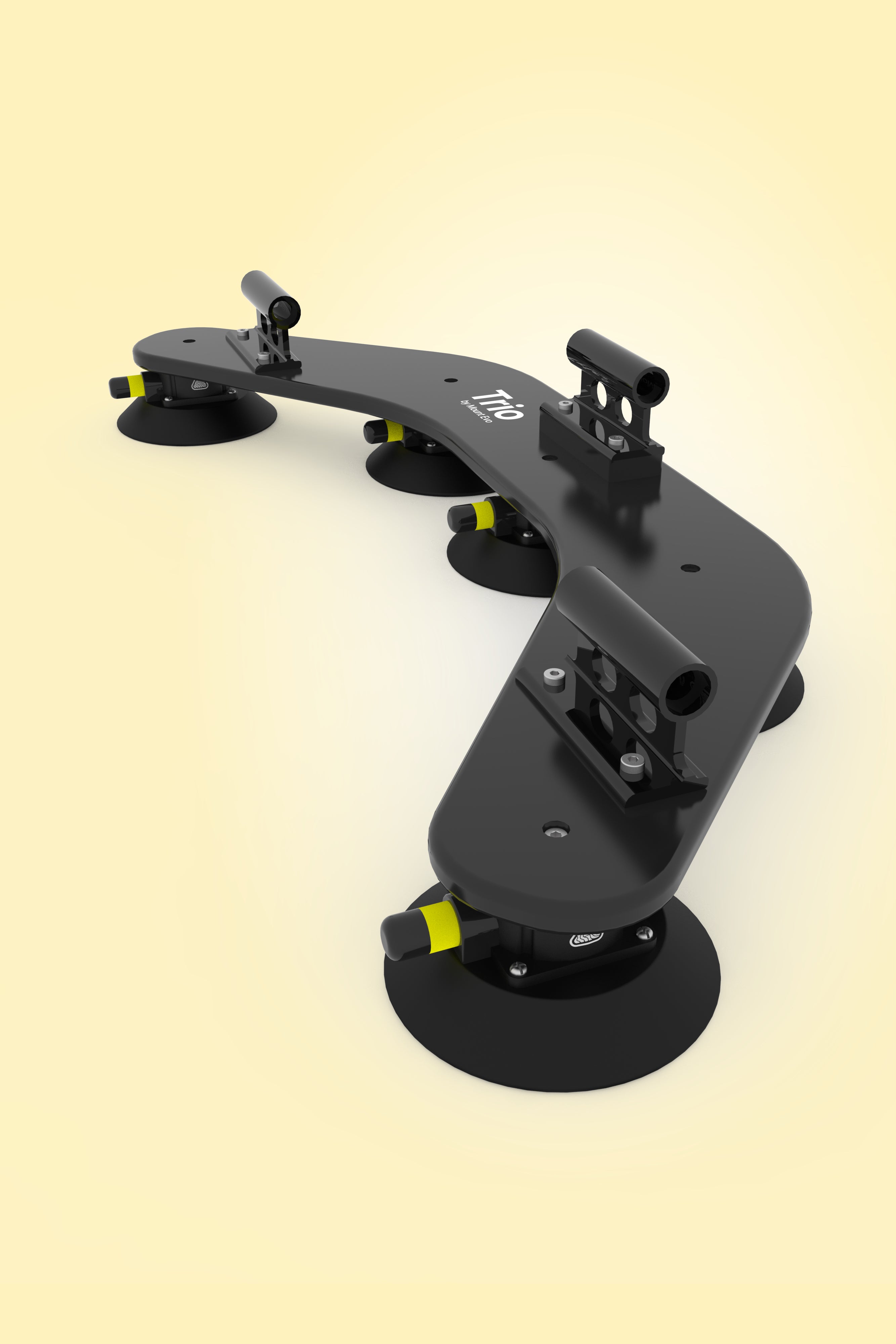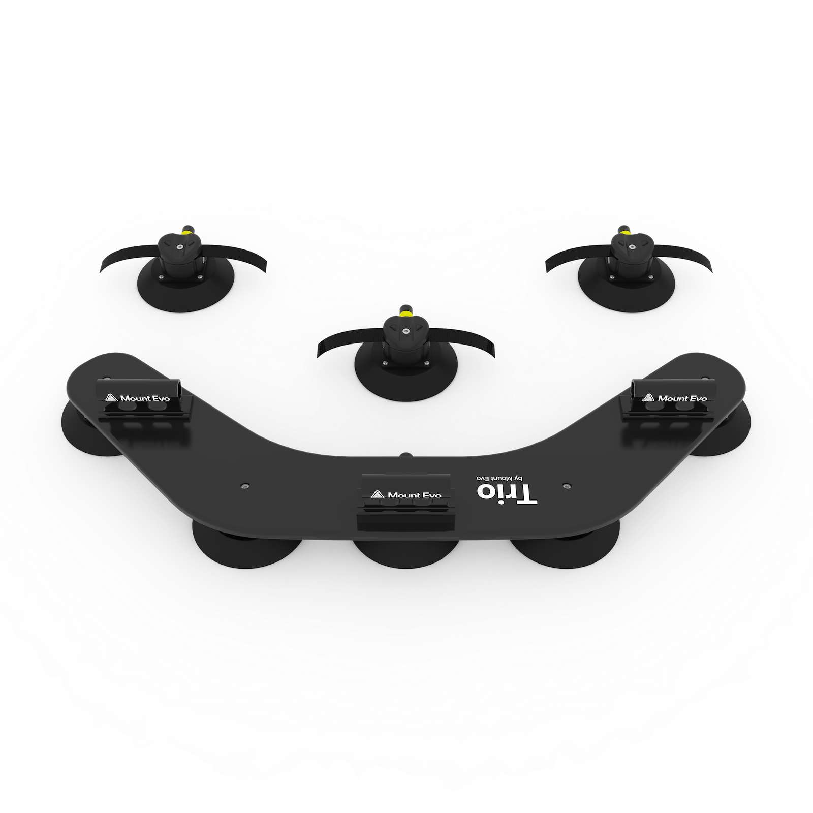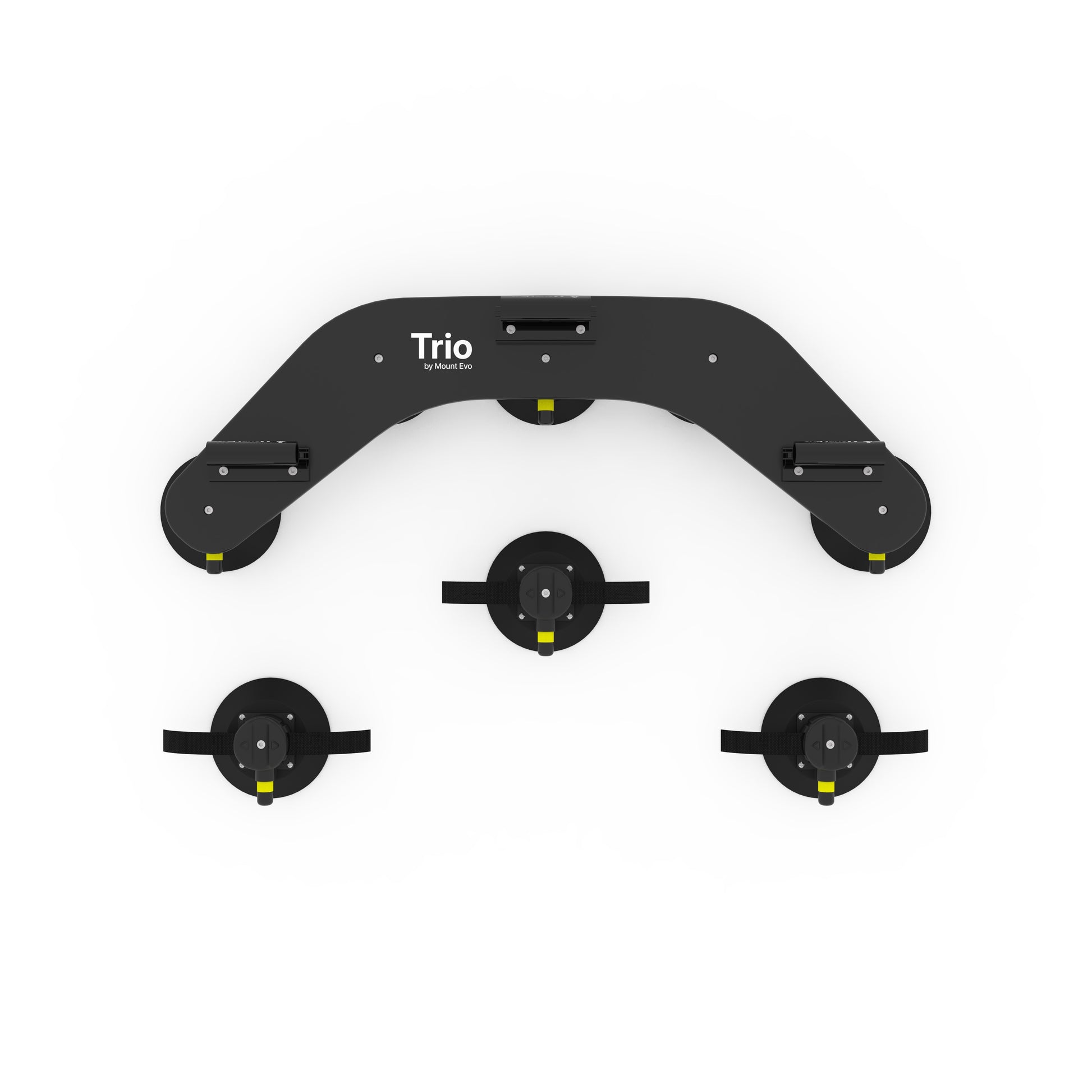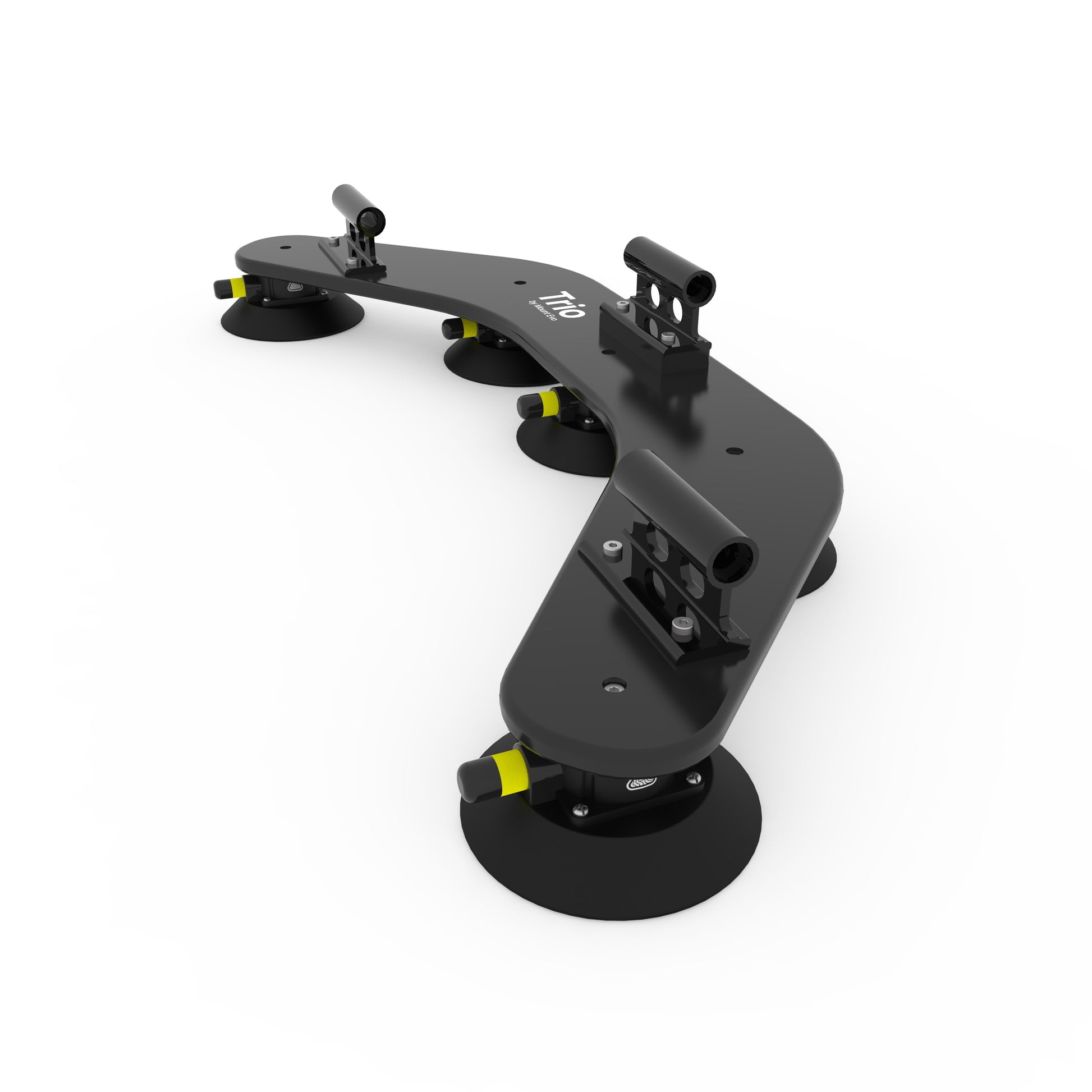Angetrieben von Vakuumsaugern in Industriequalität. Trio bietet eine Haltekraft von über 800 kg . Solo mit 400 kg Haltekraft reicht problemlos aus, um ein Mitglied des Mount Evo-Teams kopfüber zu halten.