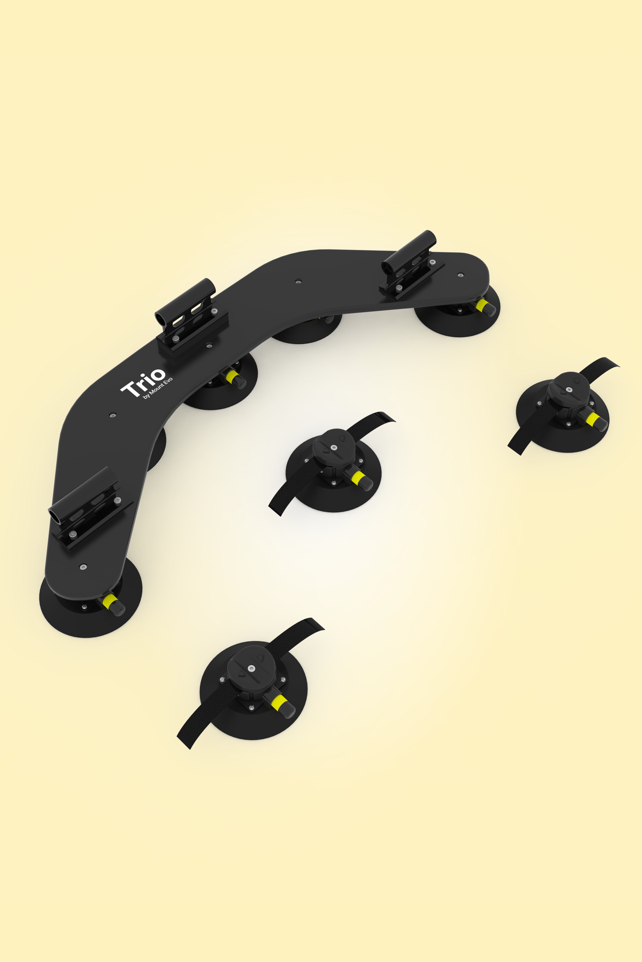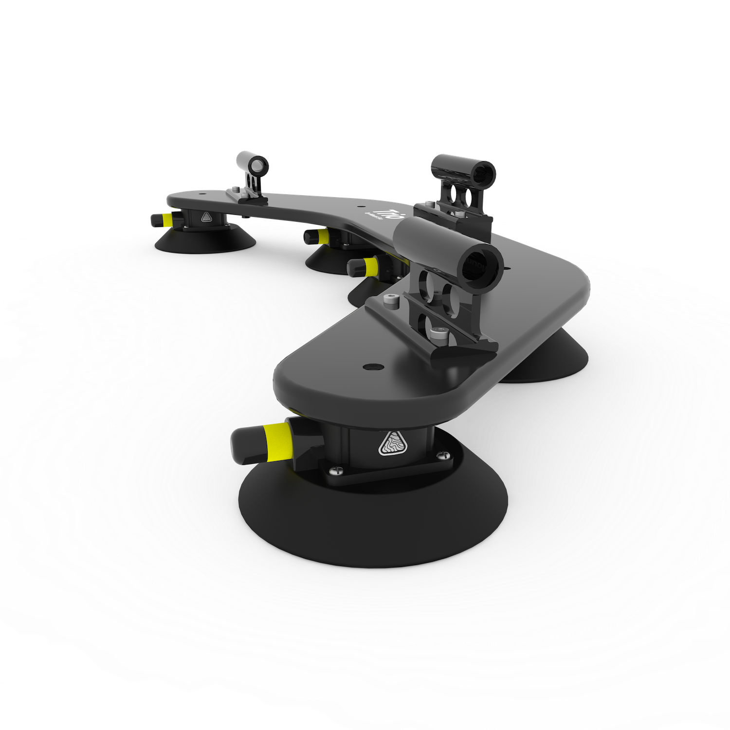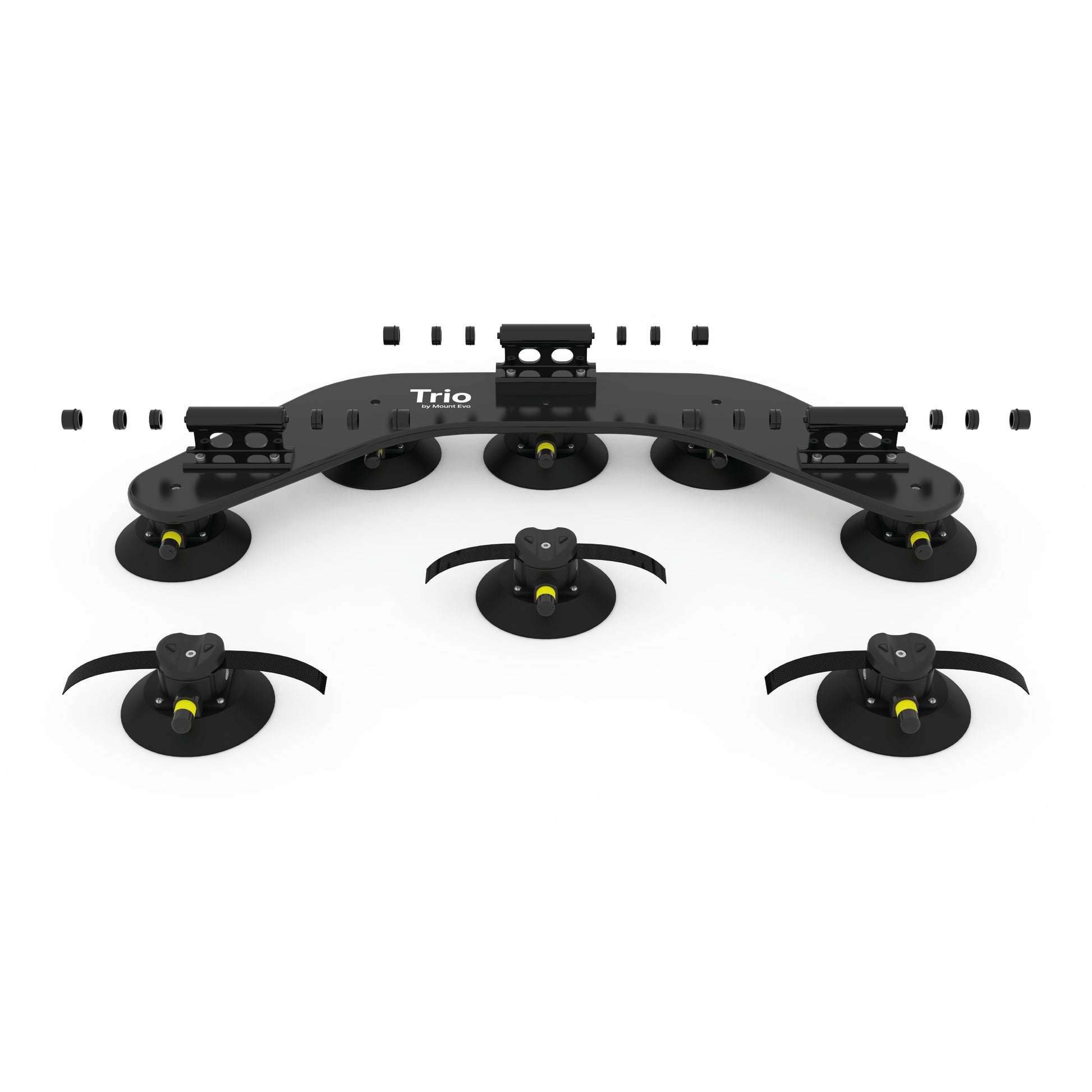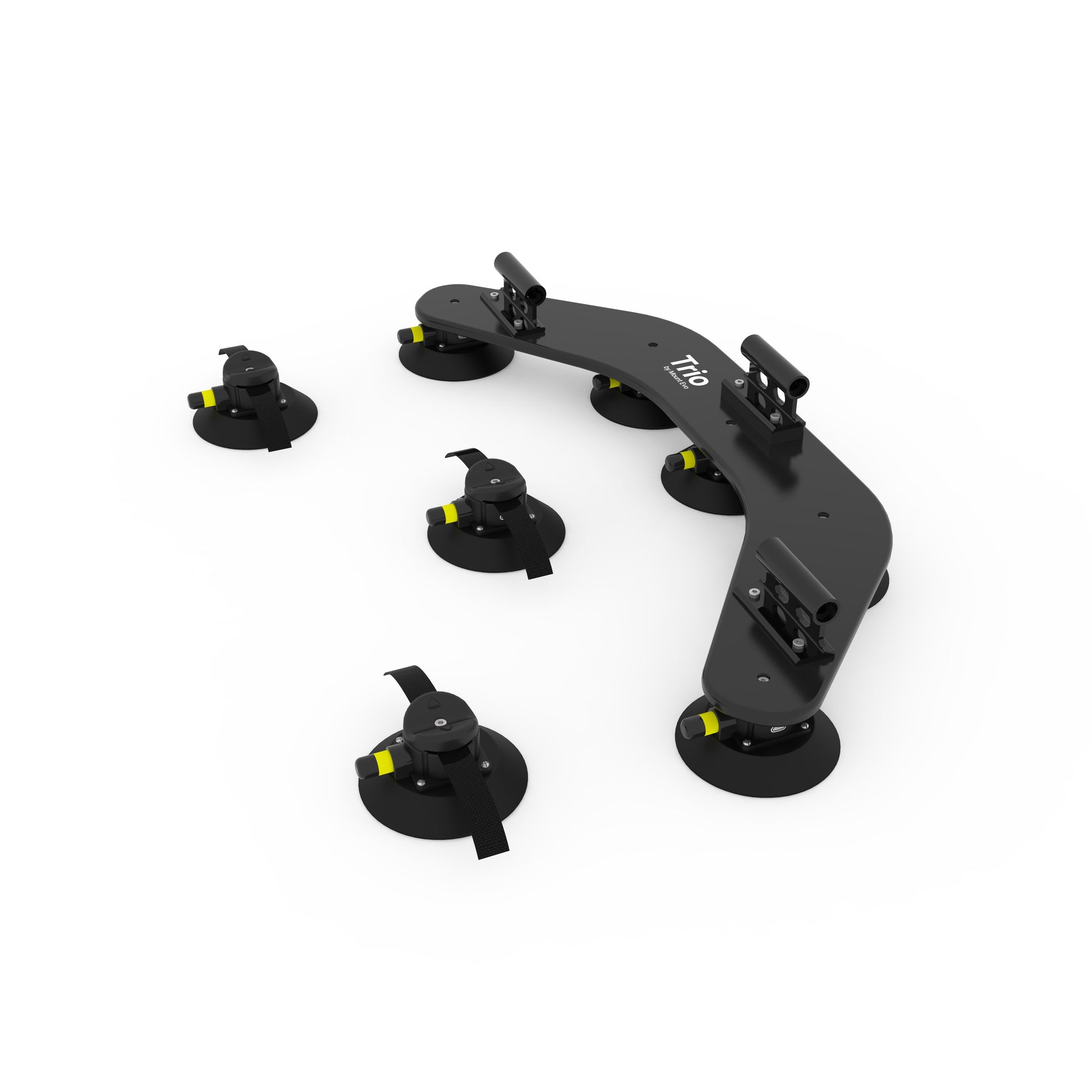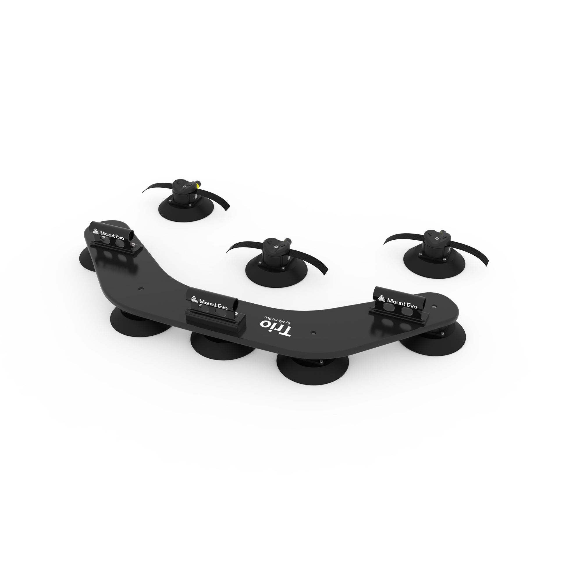 Angetrieben von Vakuumsaugern in Industriequalität. Trio bietet eine Haltekraft von über 800 kg . Solo mit 400 kg Haltekraft reicht problemlos aus, um ein Mitglied des Mount Evo-Teams kopfüber zu halten.