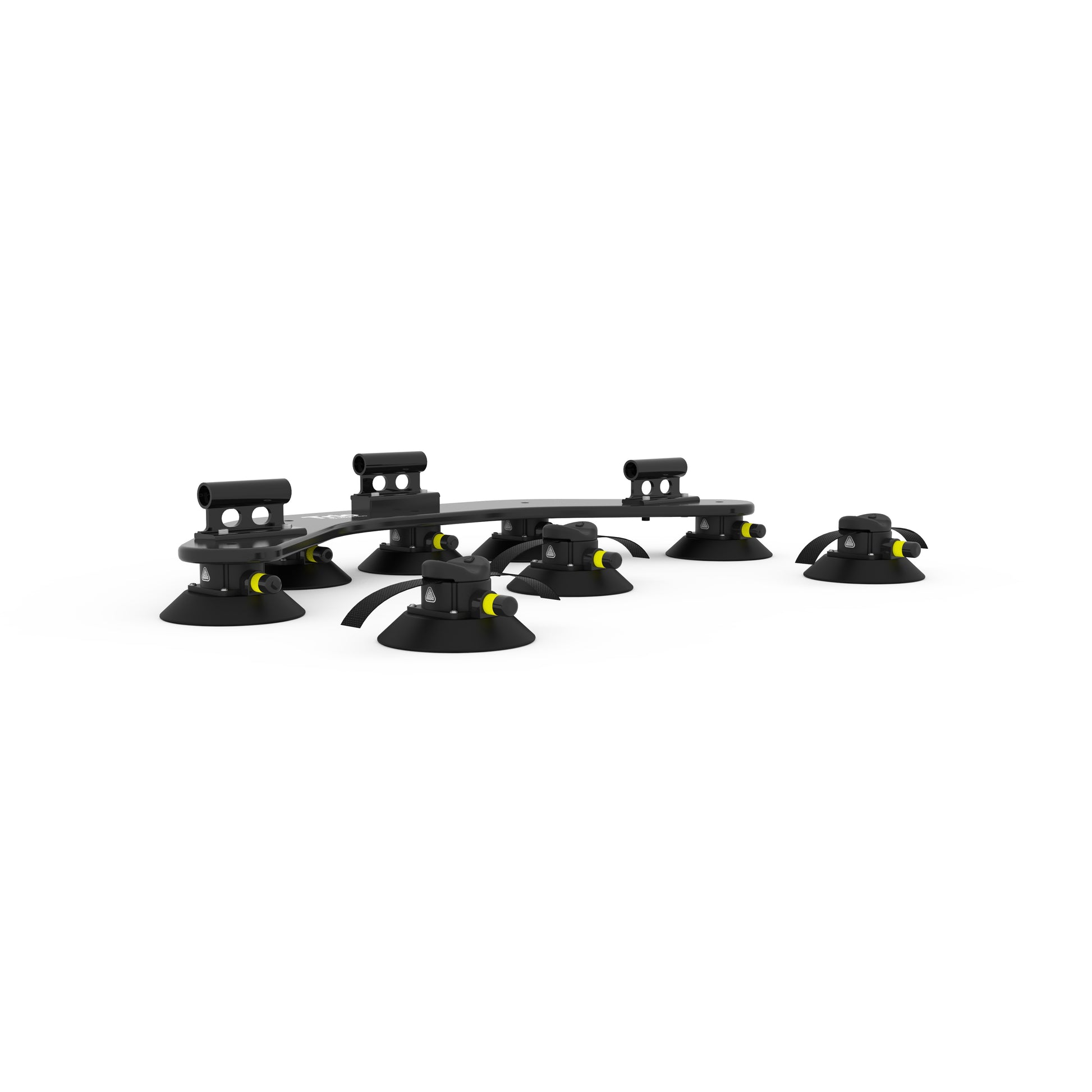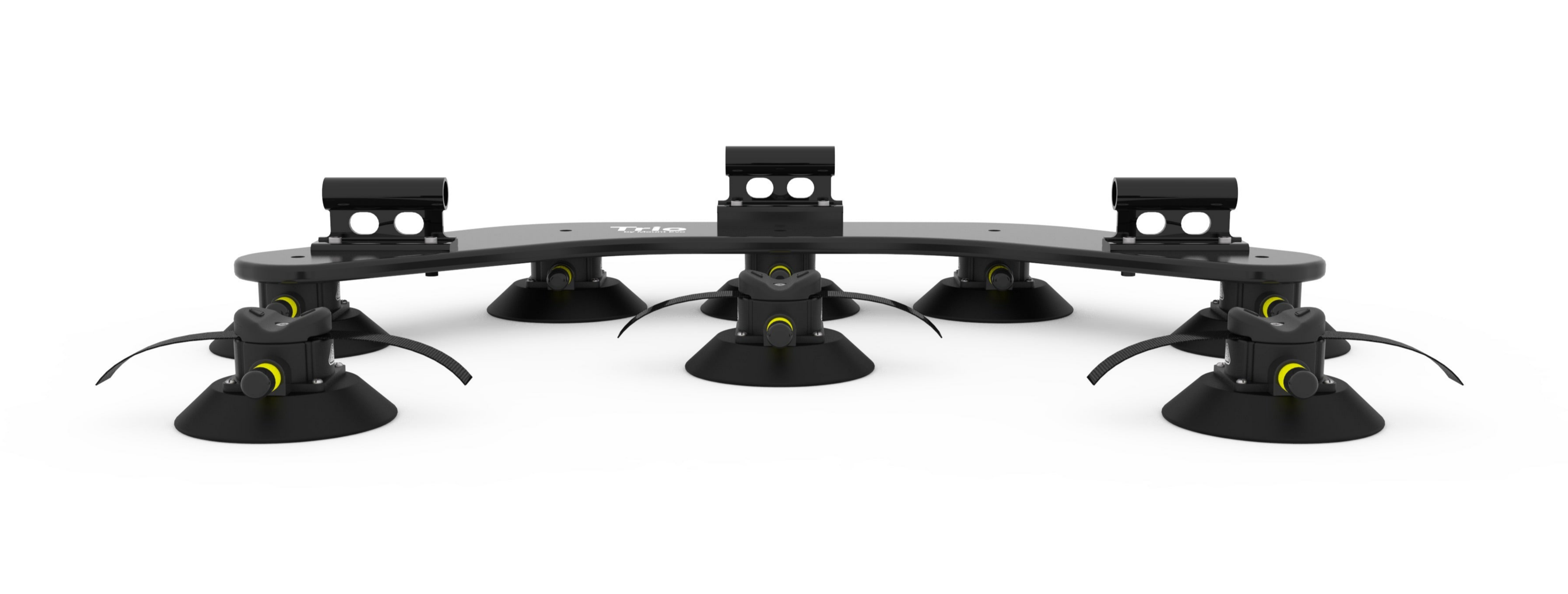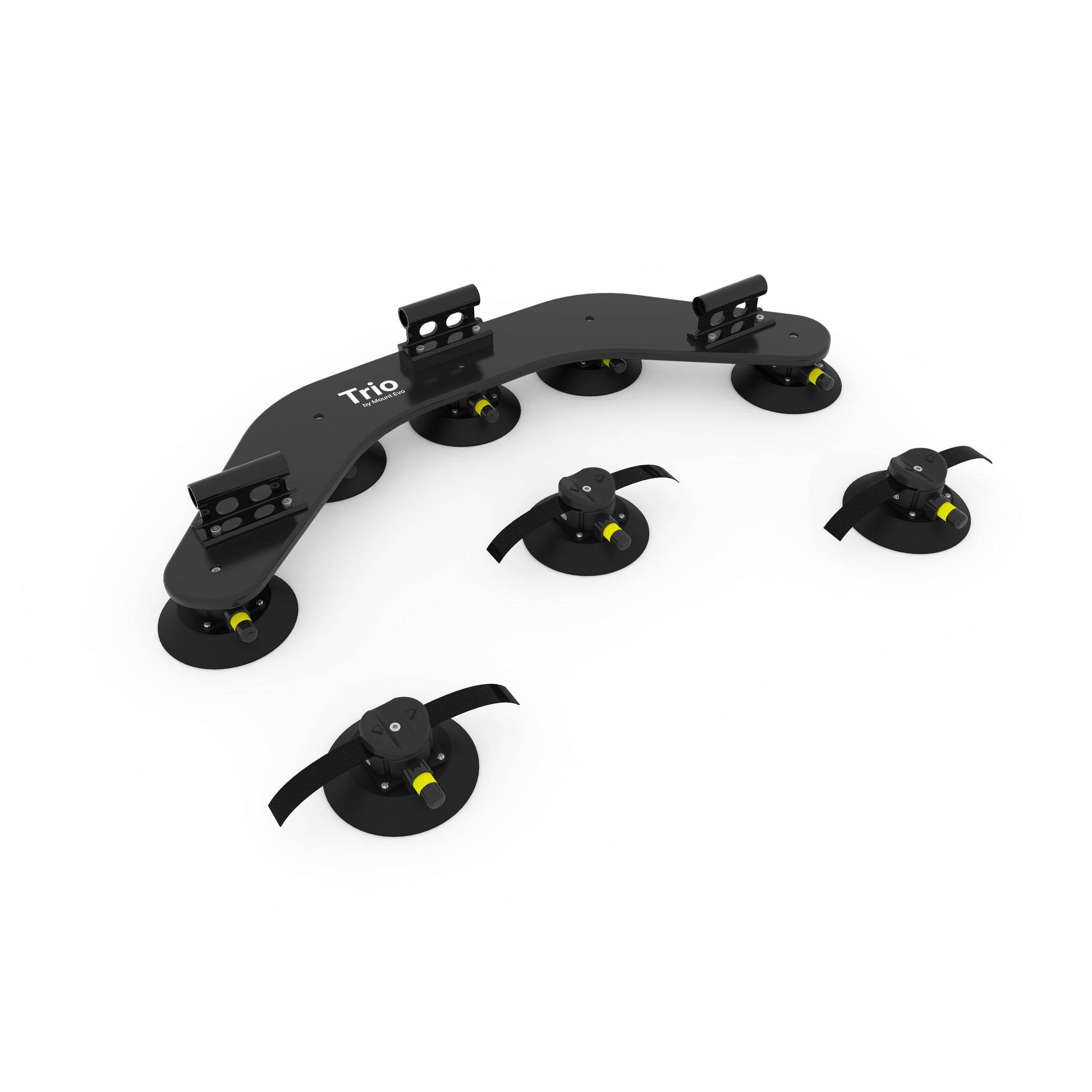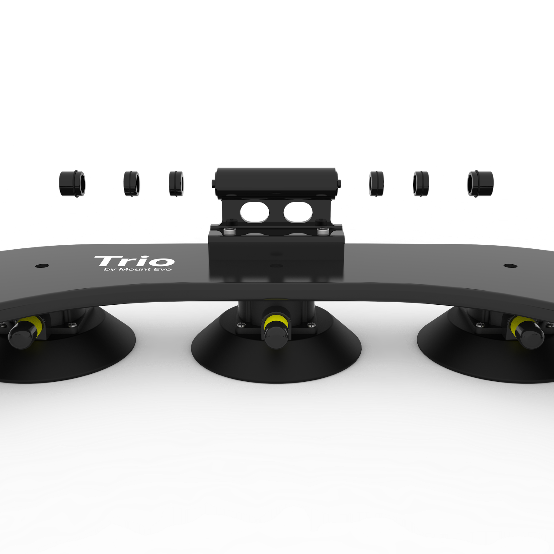 Angetrieben von Vakuumsaugern in Industriequalität. Trio bietet eine Haltekraft von über 800 kg . Solo mit 400 kg Haltekraft reicht problemlos aus, um ein Mitglied des Mount Evo-Teams kopfüber zu halten.