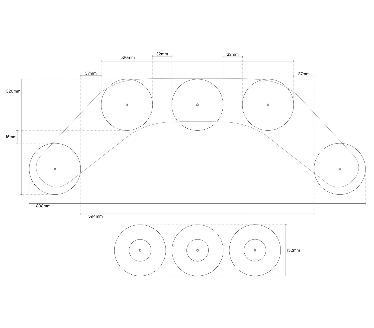 - Abmessungen - Hinterradhalterung (x3) - B152mm x L152mm x H72mm.